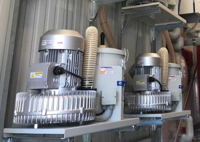 Die Turbinen sind wartungsfrei. Leitungslängen können bis zu 50m betragen (bei 4kW) und der Staub kann bequem in einem Vorabscheider gesammelt werden. Abscheidegrad 99%!